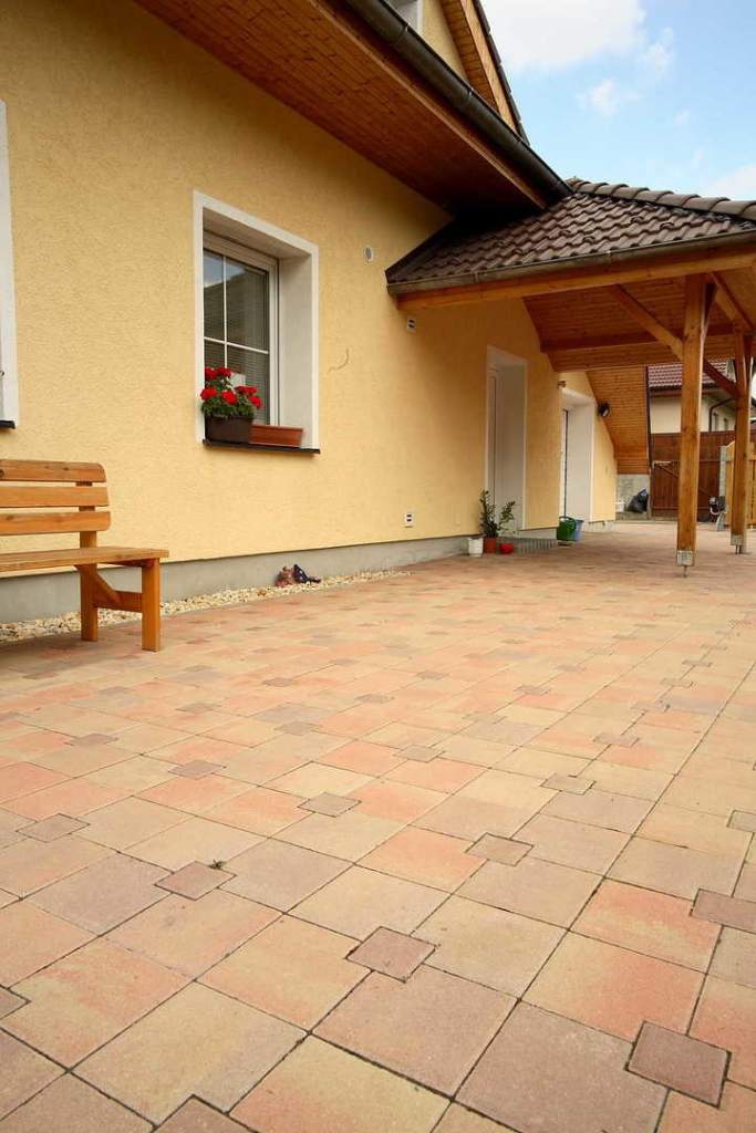 Barevná dlažba u rodinného domu v Hroznětíně
