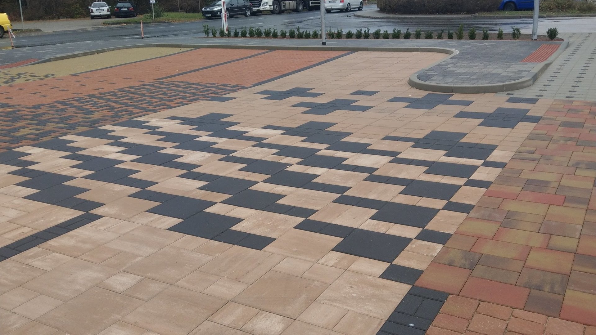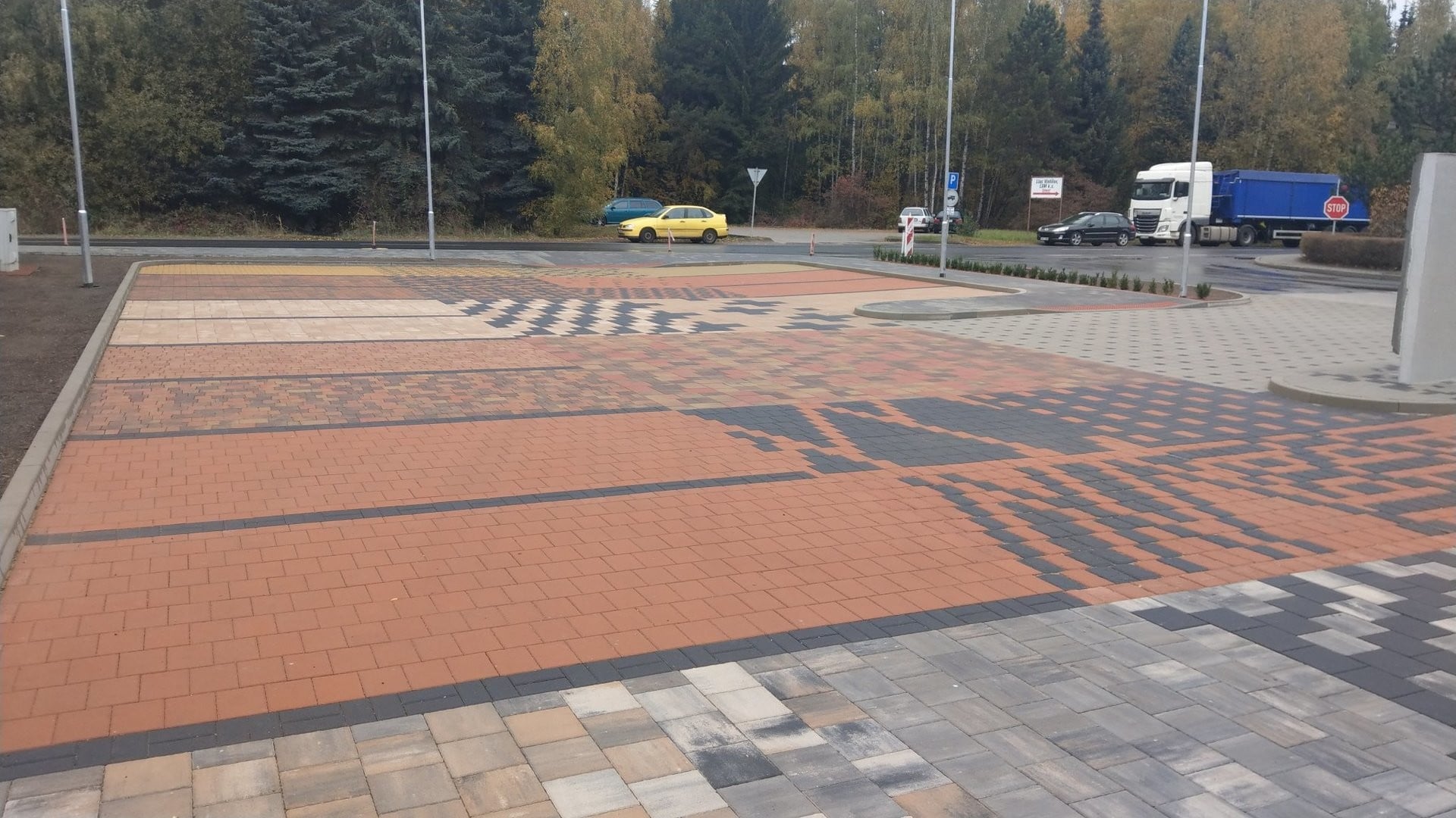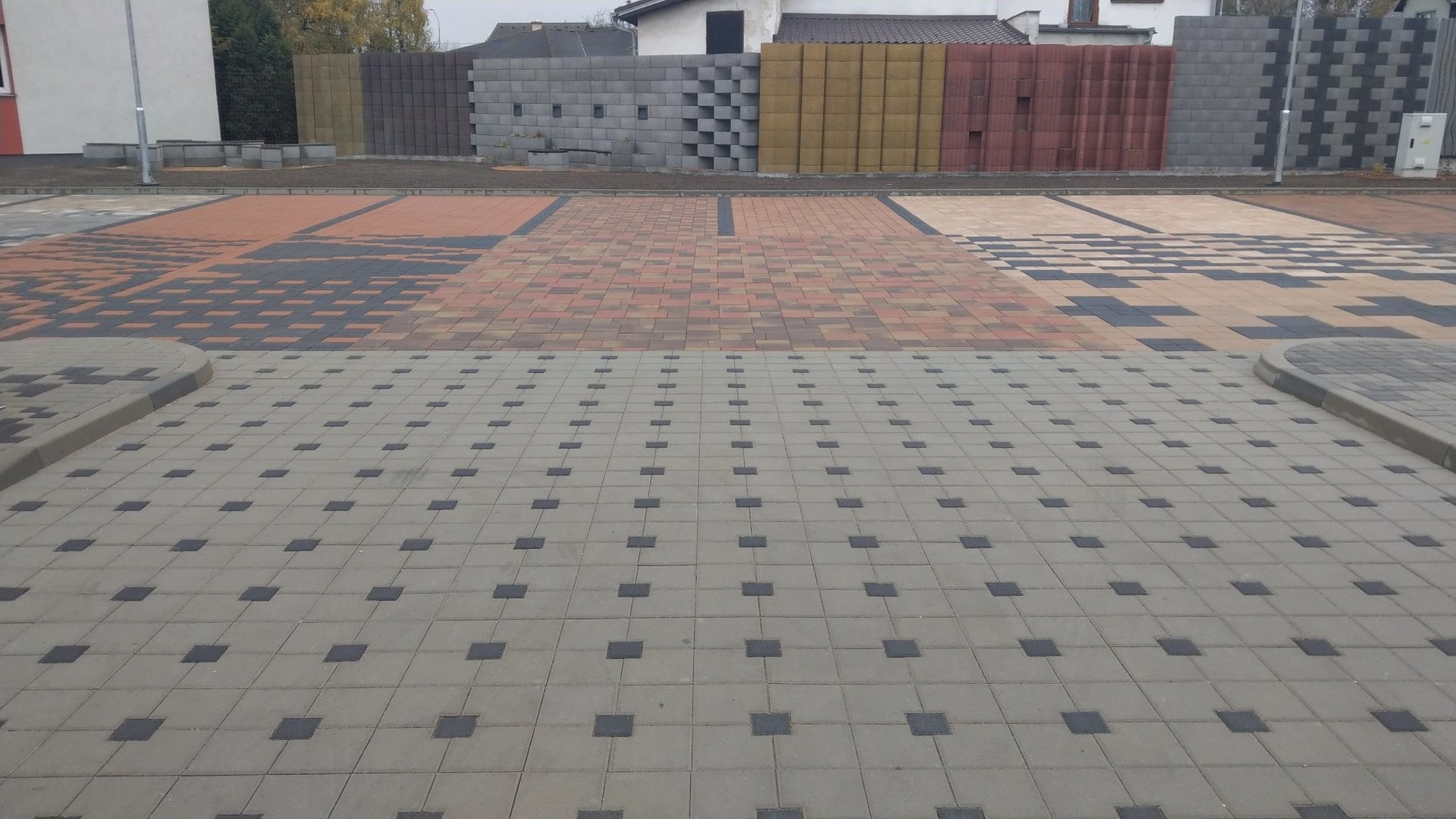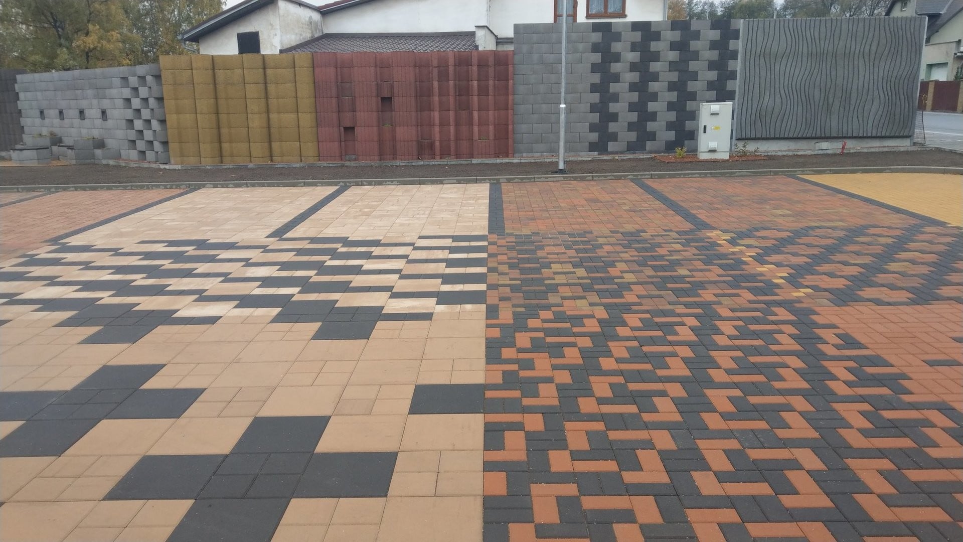 Dlážděná plocha prezentuje nabídku betonových dlažeb LiaStone ve všech dostupných barvách a různých skladebných variantách. Slouží tak nejen jako přehled našeho sortimentu, ale také inspirace pro naše zákazníky.